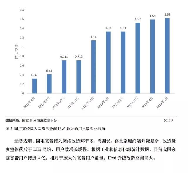 截至2019年6月,我国ipv6活跃用户数已达1.30亿,基础电信企业已分配ipv6地址的用户数达12.07亿。